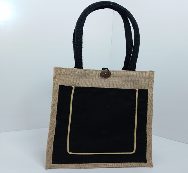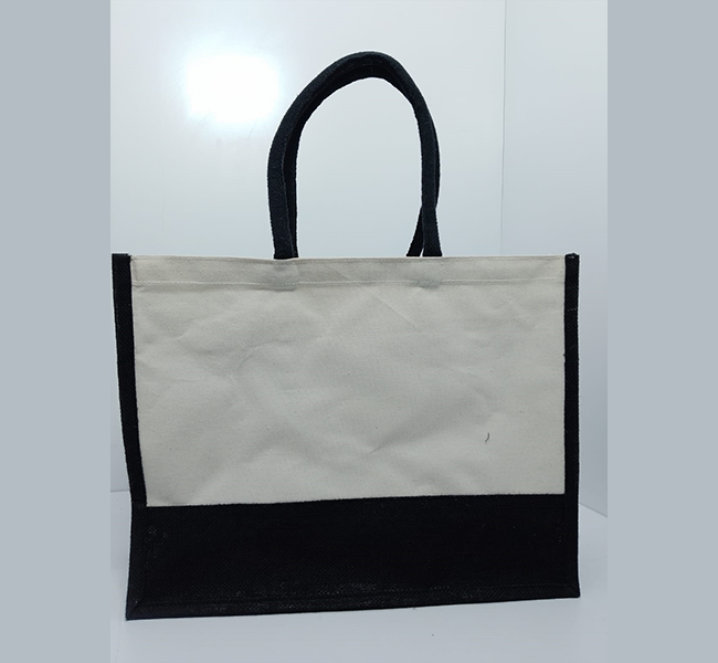 Black Jute Bag with White Sides
