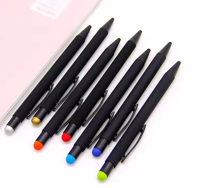 The Black Metallic Pen with Coloured Stylus combines executive style with modern practicality. Designed for professionals who switch between paper and digital devices, this dual-function pen offers a smooth ballpoint writing experience and a vibrant stylus tip that works on all touchscreen devices.