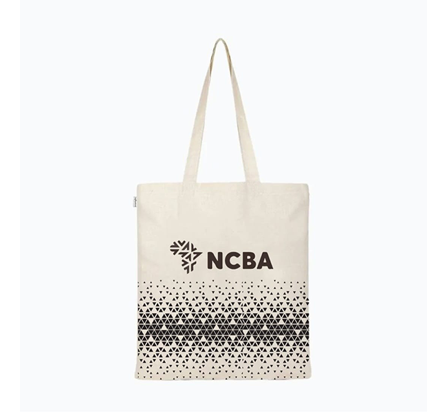 The tote bag is crafted from durable and high-quality canvas or cotton fabric, ensuring longevity and sturdiness. The design is minimalist yet eye-catching. The brand logo or name is prominently displayed on one side of the bag, either in black or cream, depending on contrast and visibility. The branding adds a touch of authenticity and style to the tote bag.