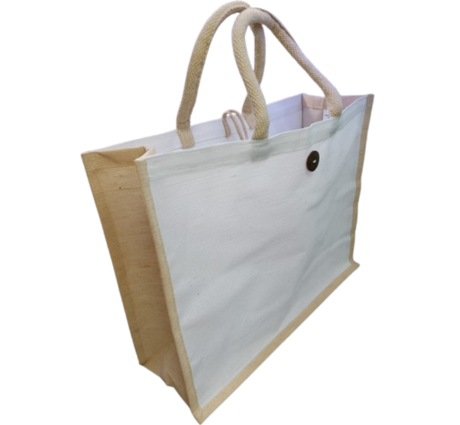 Our custom jute bag with White Sides is a chic and eco-friendly tote designed to blend sustainability with modern aesthetics. Featuring natural jute material paired with white side panels, this bag offers a stylish contrast, making it an excellent option for personal use, promotions, or branding.The clean white sides provide a fresh, modern look that contrasts beautifully with the natural jute, giving the bag a stylish, contemporary appearance.