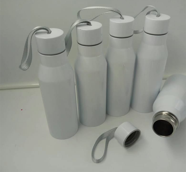 Sublimation thermal water bottles are a great way to stay hydrated in style. They are made from stainless steel and have a double-walled design that keeps drinks cold for up to 24 hours and hot for up to 12 hours. Sublimation thermal water bottles are also BPA-free and dishwasher-safe, making them a healthy and convenient choice for everyday useTourist bottle with a capacity of 600 ml, coated with a layer of polyester for printing in sublimation technology. Water bottle body made of aluminum, cap with a carabiner for attaching to, for example, a plastic backpack.