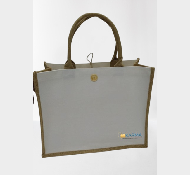 Our white-sided jute bag is crafted from high-quality, eco-friendly jute fiber, known for its strength and sustainability. The sides of the bag are made from durable cotton or canvas in a crisp white color, offering a stylish contrast to the natural jute body. The bag features a natural beige jute body with clean, white sides, creating a fresh and modern look. The white accents add a touch of sophistication and versatility, making the bag suitable for both casual and formal use.
